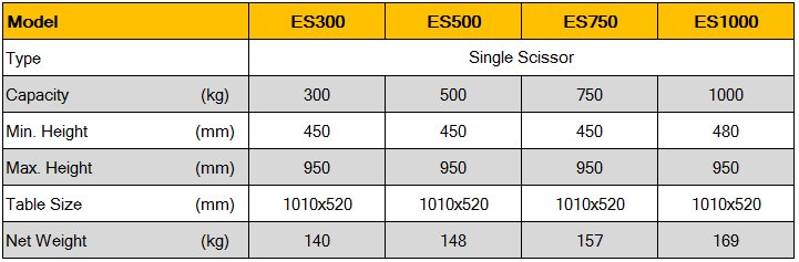 รถโต๊ะยกไฟฟ้าขากรรไกร 1 ชั้น Electric Lift Table ES series รถโต๊ะยกไฟฟ้า Electric Lift Table ES series รถโต๊ะยกไฟฟ้าขากรรไกร 1 ชั้น ES series ยกของหนักขึ้นอย่างง่ายดายโครงสร้างแข็งแรง แต่น้ำหนักเบาเป็นไปตามมาตรฐานความปลอดภัยของ CEแบตเตอรี่: 75AH / 12V, ชุดไฟ: 700 วัตต์ Specifications Catalog Video Review How to chose Specifications Catalog Video Review How to chose วิธีการเลือกรถโต๊ะยก Lift table