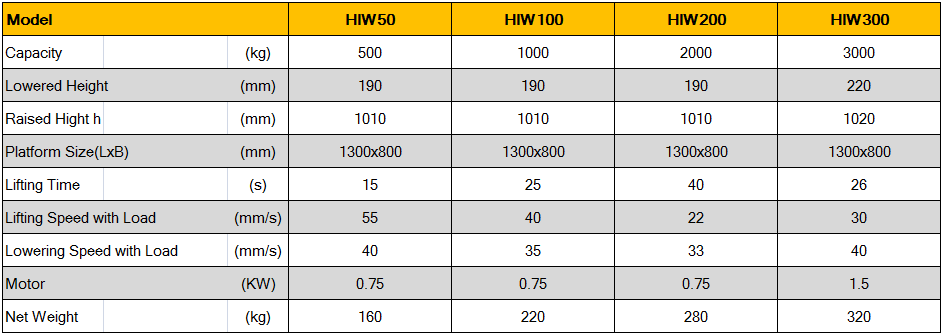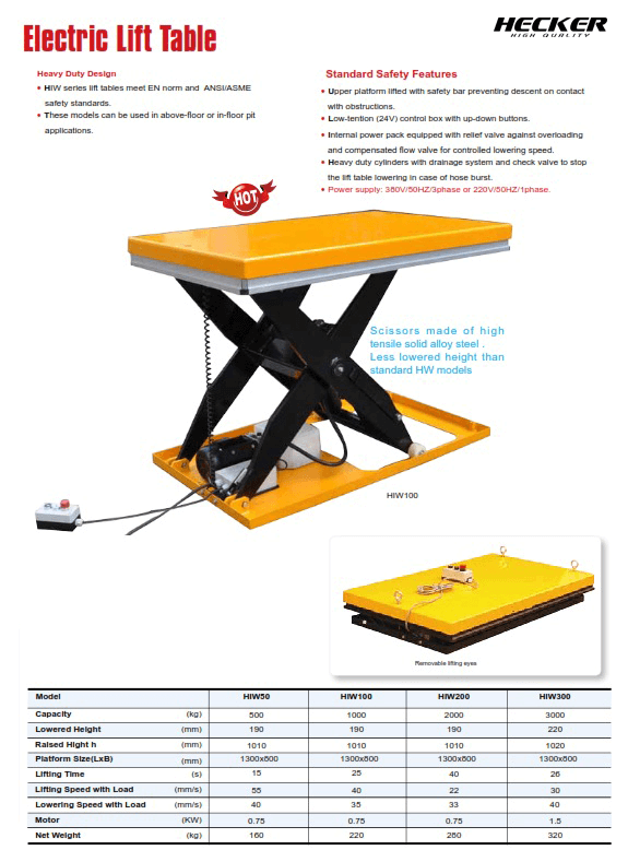 - โต๊ะยก HIW series มีมาตรฐาน EN และ ANSI / ASME