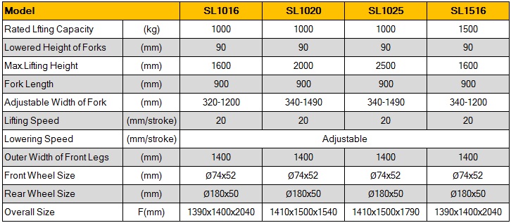 Hand Stacker รถยกพาเลทสูงด้วยมือ SL series ขากว้าง เหมาะกับพาเลทแบบปิด