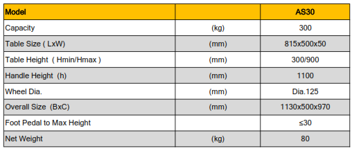 รถโต๊ะยก รุ่น AS30 รับน้ำหนักได้ 300 กิโลกรัม