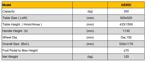 รถโต๊ะยก รุ่น AS35D รับน้ำหนักได้ 350 กิโลกรัม