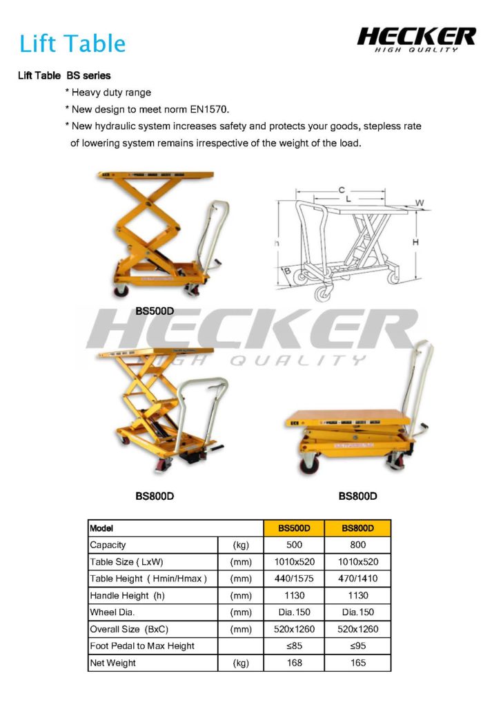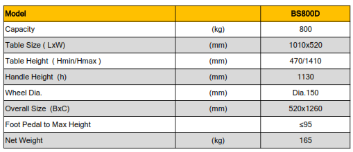 รถโต๊ะยก รุ่น BS800D รับน้ำหนักได้ 800 กิโลกรัม