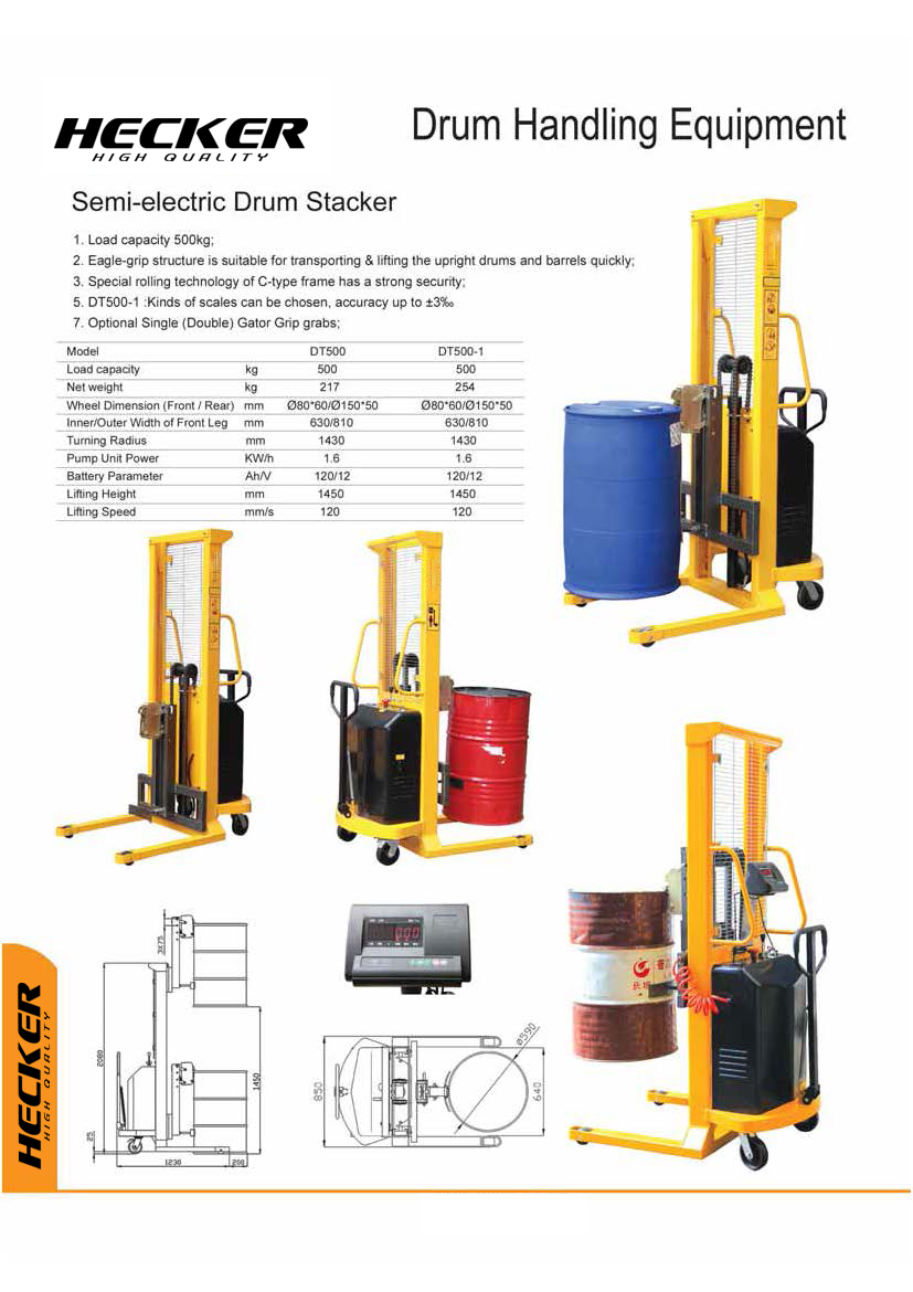 รถยกถังน้ำมันไฟฟ้า Semi- electric Drum stacker DT500 รับน้ำหนัก 500 kg.